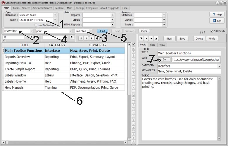 The software includes a searchable help table designed for quick access to feature explanations. Follow these steps to find the information you need: