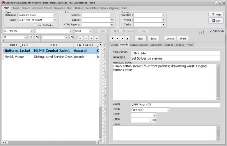| USER1 - USER5 | Custom fields for internal military museum tracking. | [Service Record Attached] |
