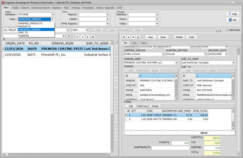 Purchase Order tracking custom database system with a PO form