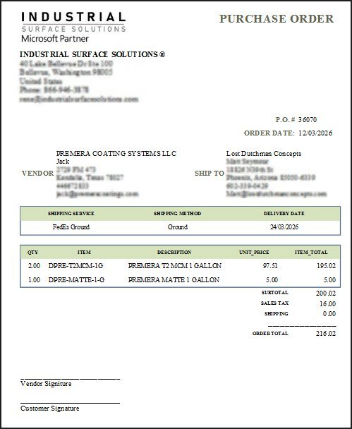 Industrial Surface Solutions is looking to customize purchase order (PO) numbering for multi-system tracking and add company branding to documents on Windows 10. The user has reported high satisfaction with the customized solution and intends to deploy it across multiple workstations. They plan to showcase it on social media platforms with a detailed spotlight.
