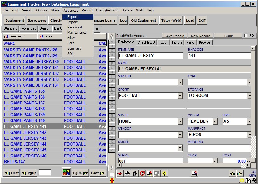 Pro Database Solutions> Sport Equipment Organizer Pro > how to export database :