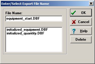 - Enter equipment_start.dbf (or any descriptive title with .dbf)
