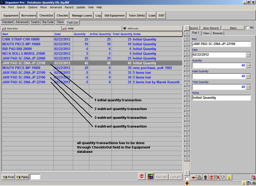Pro Database Solutions> Sport Equipment Organizer Pro > how to move records :