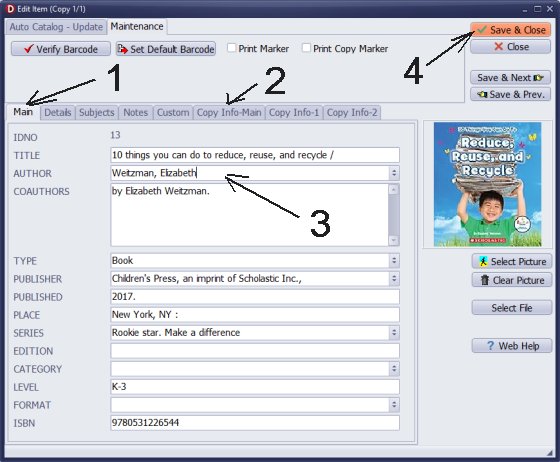 If you have several copies of the same book, you can select the copy and click Edit (1) in the copy section.